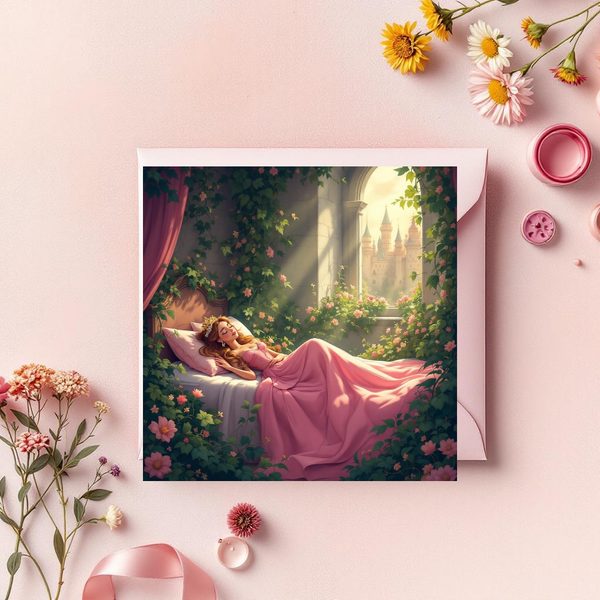 Märchenkarte Dornröschen mit Geschichte